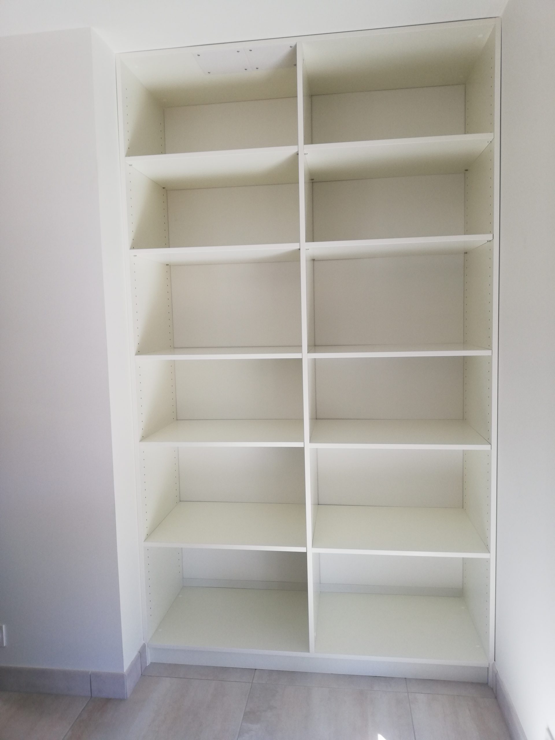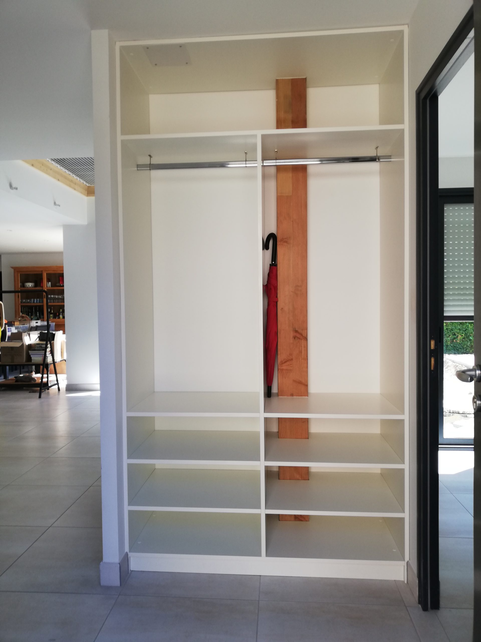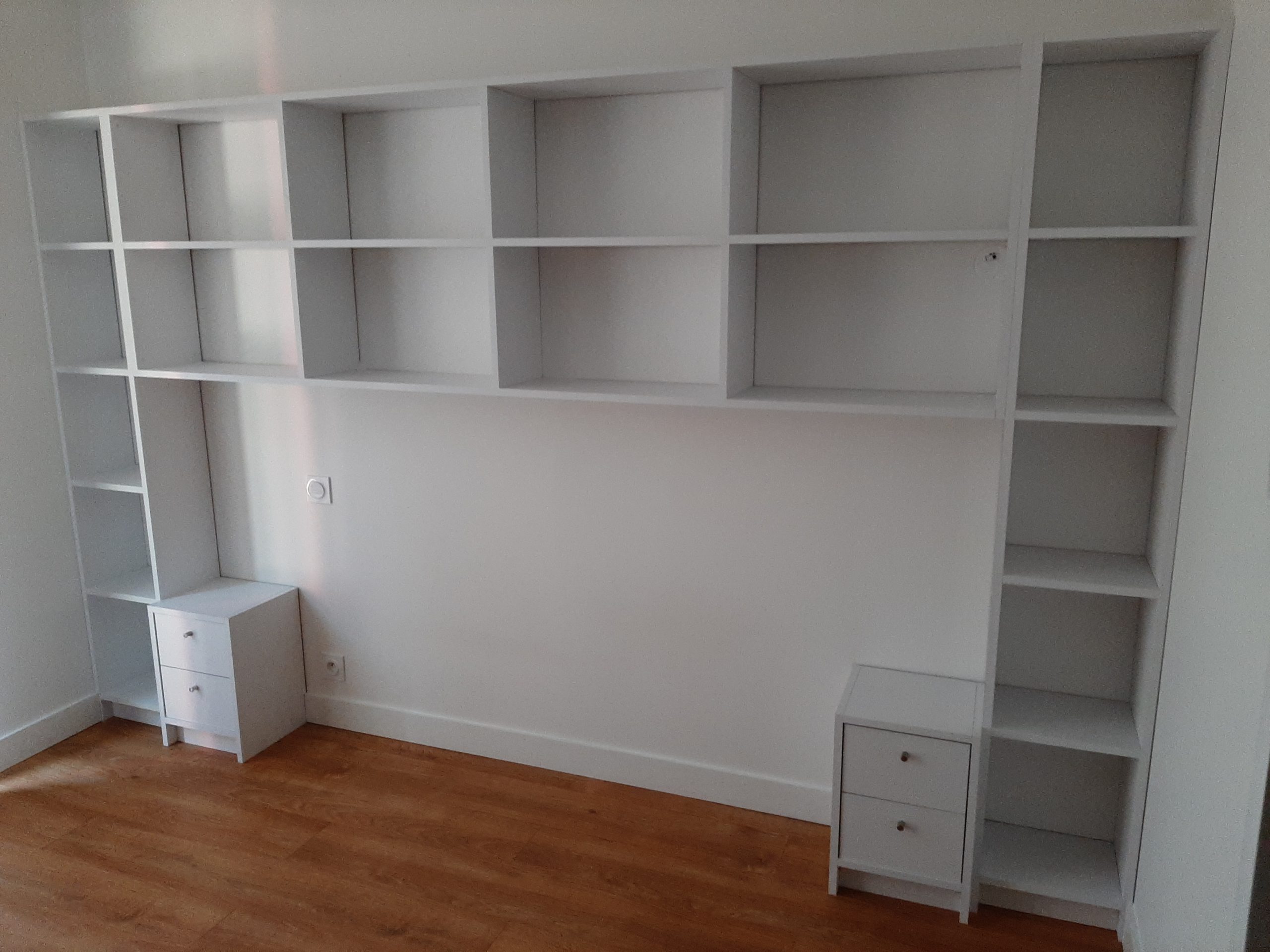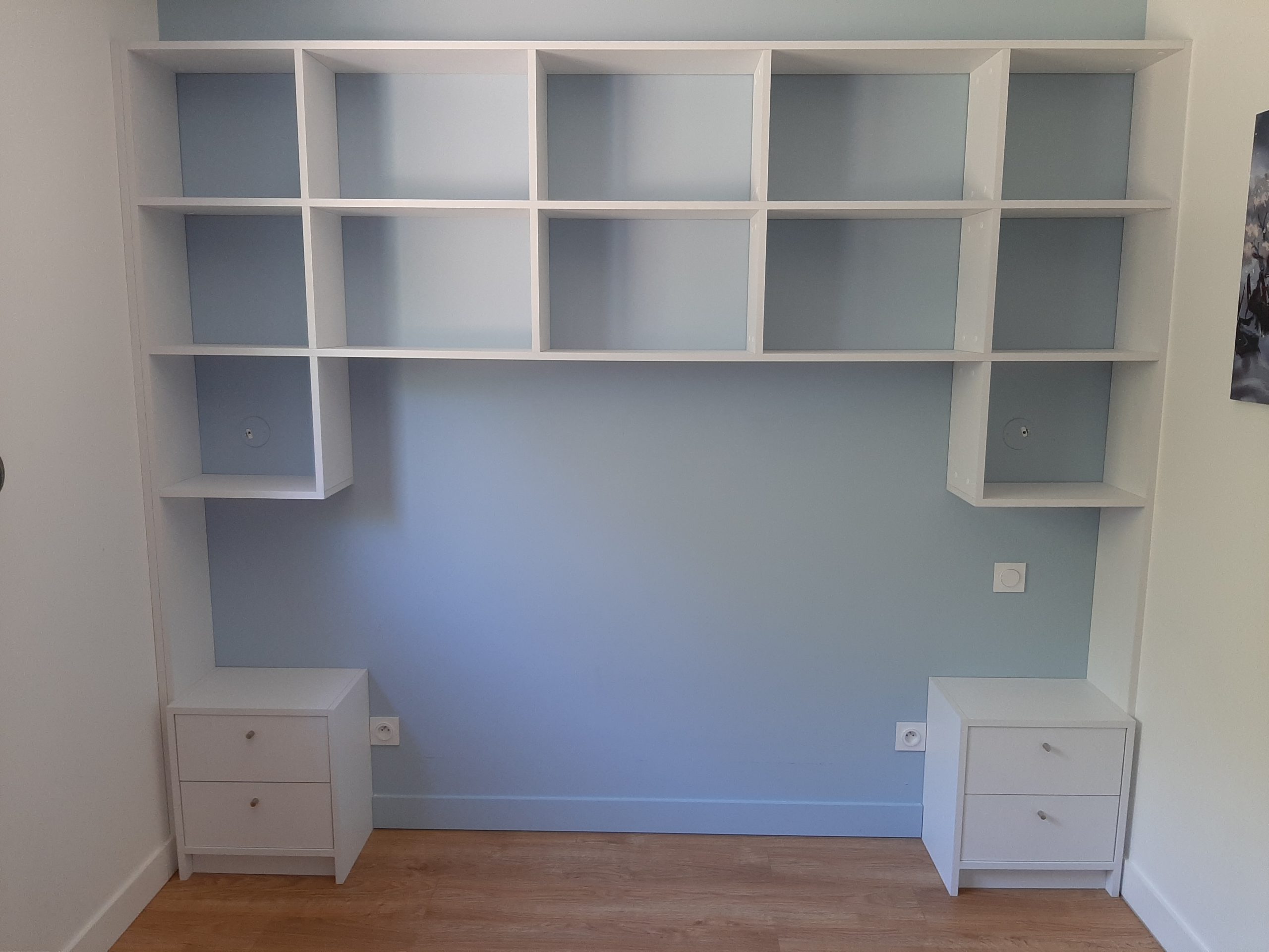 En guise d’exemple de ce que nos ateliers de menuiserie d’Angers peuvent faire pour vous, voici le projet que nous avons réalisé pour un client. À partir d’une feuille blanche, nous avons créé des meubles et rangements personnalisés en panneaux mélaminés de 19 mm de la marque Pfleiderer. Nous leur avons associé des chants en PVC de 2 mm.