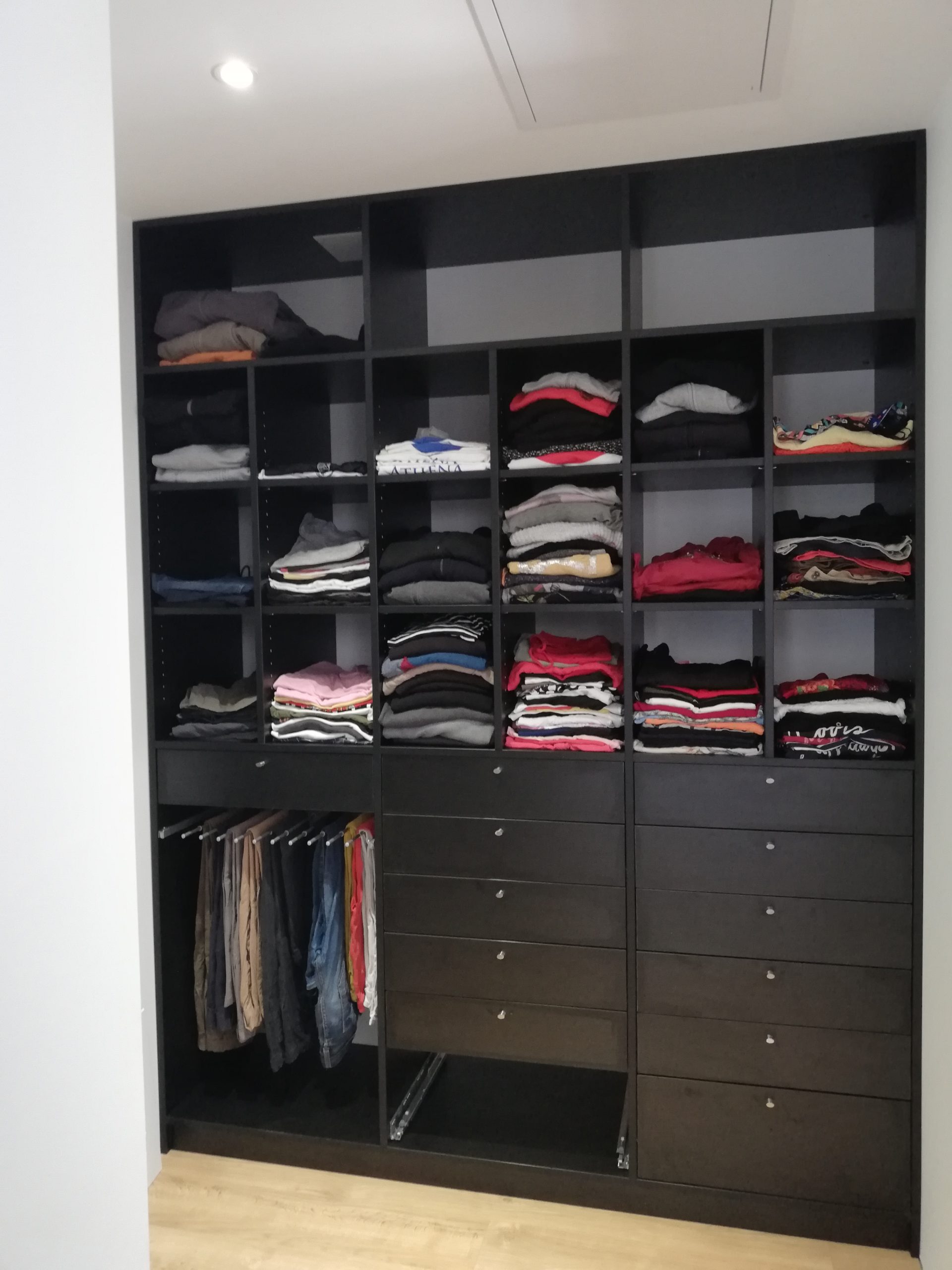 Rien de tel pour organiser sa garde-robe qu’un dressing. De plus en plus de Français réalisent ce rêve en prévoyant cet espace dans la chambre à coucher. Mais encore faut-il bien organiser cet espace de rangement. Seul un dressing sur mesure permet de remplir cet objectif parfaitement. Pour ce client, nous avons alterné cases ouvertes, tiroirs et penderie en fonction de ses besoins. Le meuble sur mesure exploite toute la largeur et la hauteur disponible.