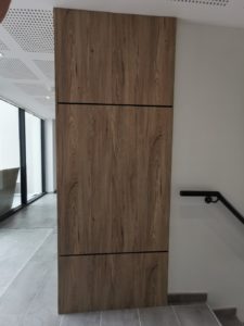 MAINE-ET-LOIRE HABITAT en tant que maître d’ouvrage avait désigné en conception-réalisation, Les Ateliers Michel, entreprise de menuiserie à Angers et au Lion d’Angers, pour habiller l’entourage des blocs de boites aux lettres présent dans le hall du logement collectif.
